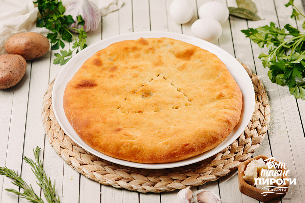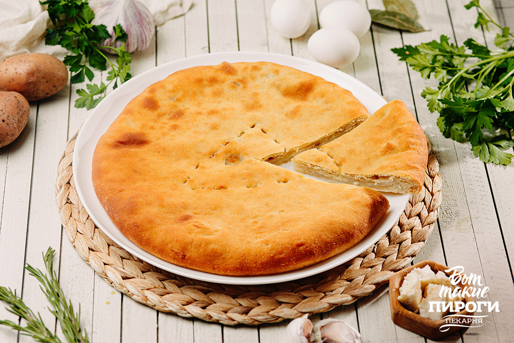Состав: картофель, сыр Сулугуни, масло сливочное, яйца куриные, масло подсолнечное, молоко, соль, перец черный молотый, сахар, мука, вода, дрожжи.