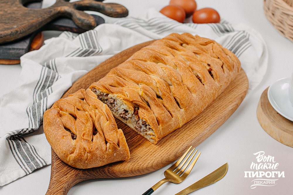 Кулебяка с мясным фаршем и рисом